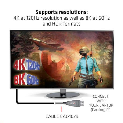 Club 3D CAC-1079 je aktívny optický jednosmerný kábel DisplayPort™, ktorý umožňuje podporu 8.1 Gb/s na kanál. Podporuje rozlíšenie 4K pri 120 Hz, ako aj 8K pri 60 Hz a formáty HDR. Tento kábel s optickými vláknami možno použiť na prenos audio a video signálov na vonkajších displejoch, LED tabuliach, displejoch domáceho kina, konferenčných miestnostiach, lekárskych zobrazovacích zariadeniach alebo bezpečnostných systémoch.