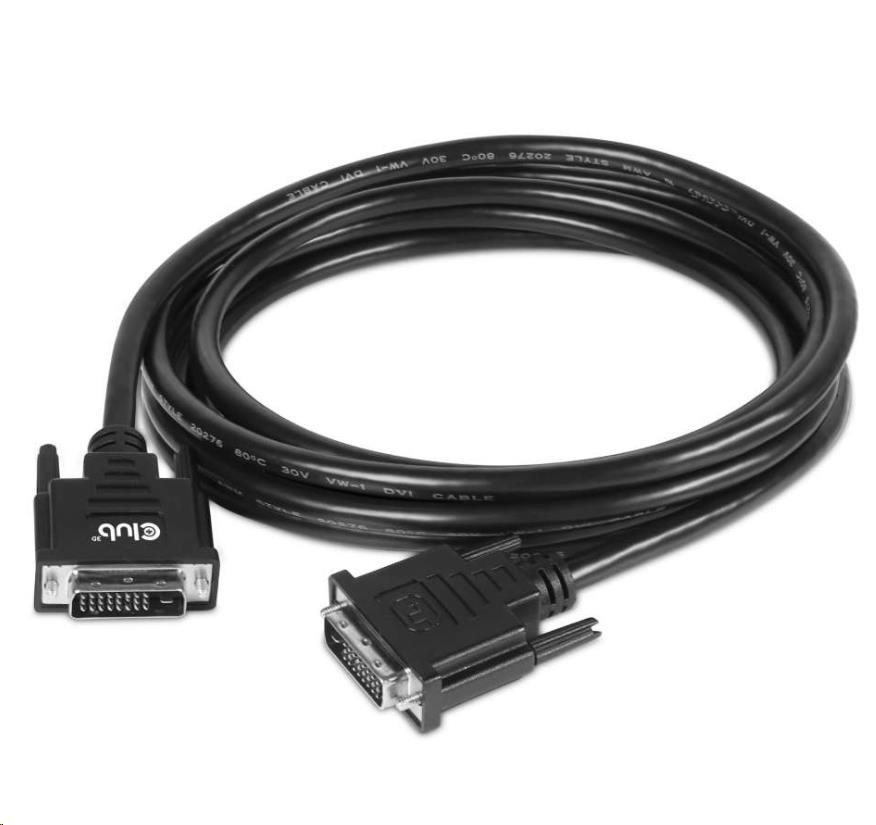 Club 3D CAC-1223 je kábel DVI-D(24+1) Male na DVI-D(24+1) Male. Tento kábel je plne obojsmerný. Tento kábel CAC-1223 je najjednoduchším riešením na pripojenie monitora DVI-D, projektora alebo televízora k výstupu DVI-D počítača/notebooku/hernej konzoly.