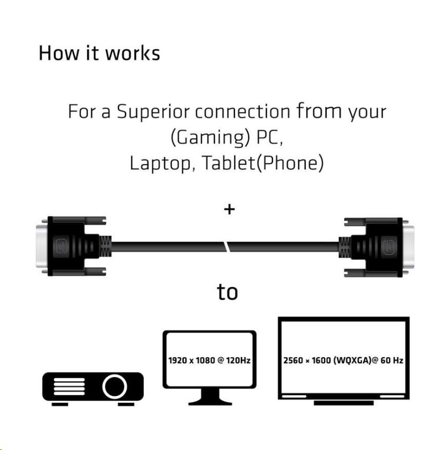 Na pripojenie k zariadeniam použite jeden z našich káblov DVI-D (predlžovací/adaptér): Ak potrebujete pomoc pri výbere správneho kábla, navštívte našu webovú stránku www.klub-3d.com alebo nám napíšte na support@club-3d.com a bude nám potešením vám pomôcť