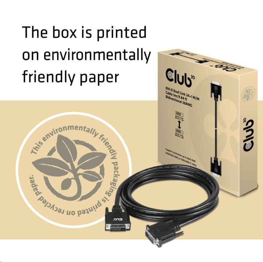 Club3D DVI-D Dual Link kábel (24+1), 3 m, obojsmerný, 28 AWG