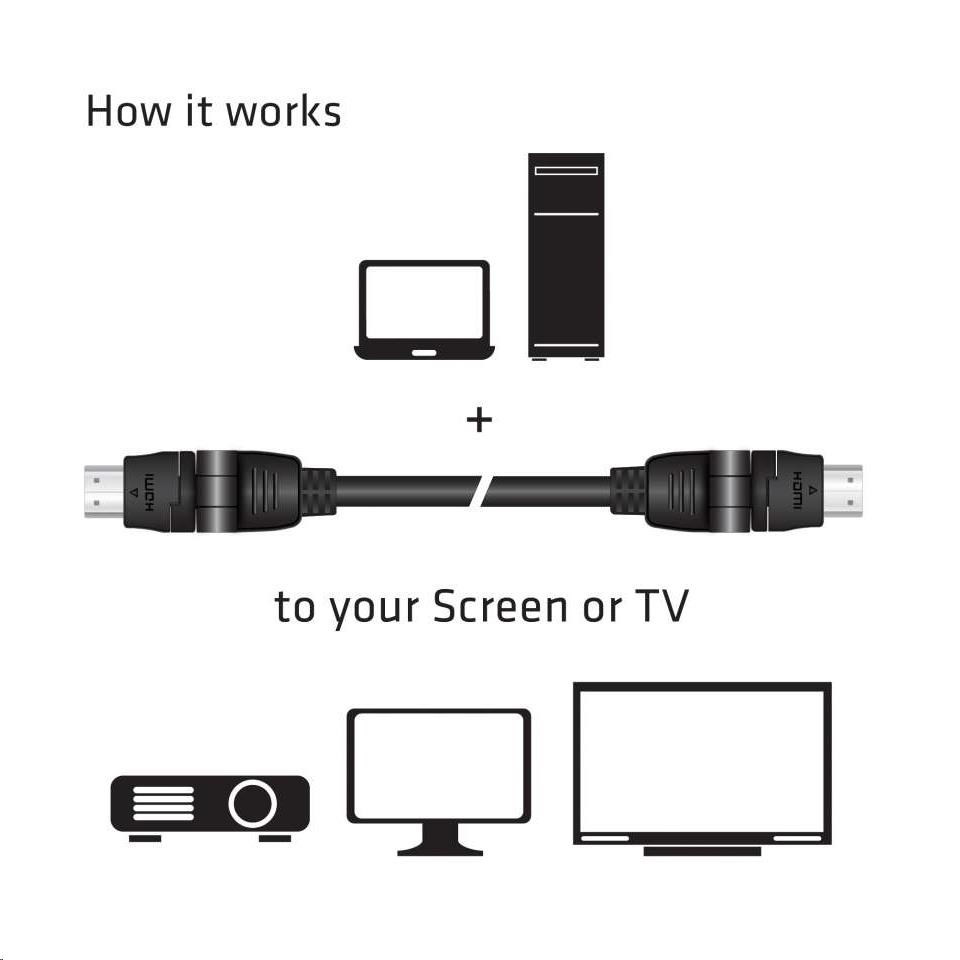 Club 3D HDMI ™ 2.0 4K60Hz UHD 360 ° rotačný kábel môže byť skrútený alebo otočený do prakticky ľubovoľnej polohy. Konektory Rotator majú stredový guľový kĺb, ktorý umožňuje otáčanie a ohýbánie o 360 stupňov. Konštrukcia káblu zaisťuje integritu signálu v ľubovoľnej polohe a jeho flexibilita je ideálna pre inštalácie v tesných / úzkych priestoroch, kde sú štandardné konektory problematicky inštalovateľné.