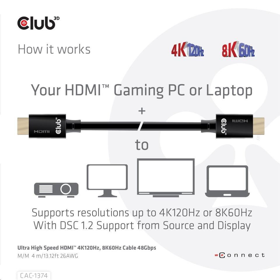 Club3D Kabel Ultra Rychlý HDMI™, 4K120Hz, 8K60Hz Cable 48Gbps (M/M), 28AWG, 4m