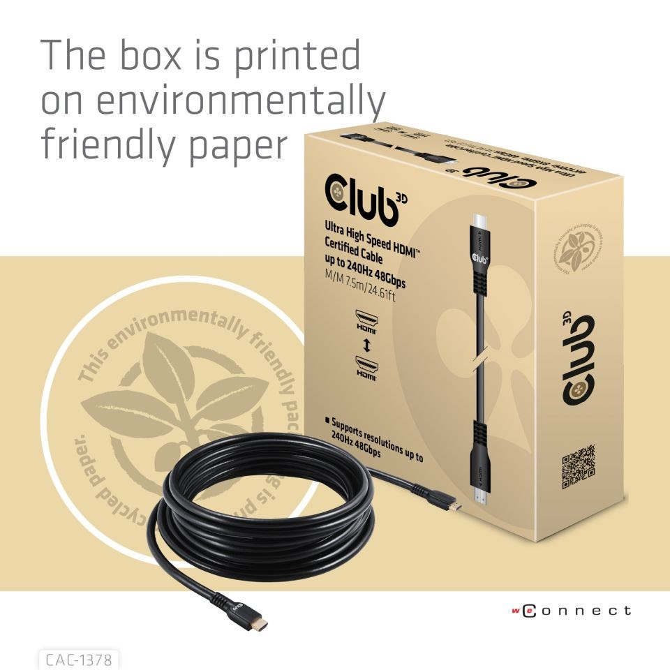 Club3D Kabel HDMI, Ultra Rychlý HDMI™ Certifikovaný Cable, 4K120Hz/ 8K60Hz, 7.5m