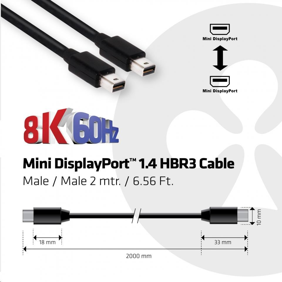 Club3D Kabel mini DisplayPort 1.4 HBR3 8K60Hz (M/M), 2m, 34 AWG