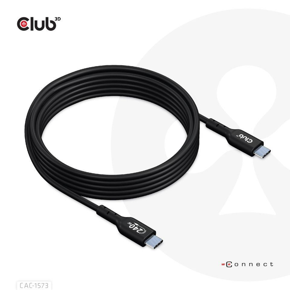 Club 3D CAC-1573 USB2.0 Obojsmerný kábel typu C, dáta 480Mb, PD 240W(48V/5A) EPR, rozšírený rozsah napájania M/M 2m/6.56ft pripojí váš notebook, tablet alebo telefón s výstupom USB typu C k vašim obľúbeným existujúcim periférnym zariadeniam, príslušenstvu a nabíjačkám. Umožňuje prenos dát a napájanie cez jeden kábel a oboma smermi. Tento kábel podporuje USB2.0 dát až do 480 Mb/s a výstupom až do 240 Wattov (48 V/5 A) na následné nabíjanie alebo napájanie notebooku, tabletu alebo smartfónu.