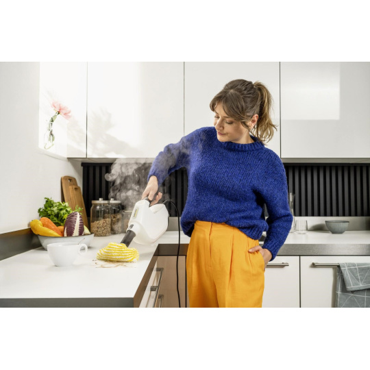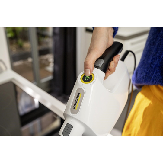 Kompaktný parný mop SC 1 Multi & Up čistí bez použitia chemikálií a dá sa rýchlo použiť na hlboký upratovaní celého domu, a to buď ako multifunkčný ručný parný čistič, alebo ako všestranný parný mop 3 v 1 vďaka sade veľkých podlahových hubíc EasyFix, ktorá je súčasťou balenia. Pracuje vo troch rôznych polohách zariadenia - horná, stredná a dolná - a dokonale sa prispôsobí individuálnym požiadavkám. Dôkladné čistenie parným čističom Kärcher odstráni z tvrdých povrchov až 99,999 % vírusov* a 99,99 % všetkých bežných domácich baktérií**. Vďaka kompaktnému a praktickému designu sa prístroj pohodlne používa a ľahko skladá aj v tých najmenších priestoroch. SC 1 Multi & Up je pripravený na použitie do 30 sekúnd a vďaka odnímateľnej nádržke na vodu sa ľahko dopĺňa - to znamená, že nemusíte dlho čakať alebo prerušovať prácu. Vymeniteľná odvápňovacia kazeta zabezpečuje automatické odstraňovanie vodného kameňa, čím je životnosť výrobku päťkrát dlhšia. Svetelný LED displej s ovládacím panelom umožňuje jednoduché a bezproblémové ovládanie. Na displeji sú vždy zobrazené rôzne režimy, ako je ohrev, pripravenosť na použitie, parný režim a termín výmeny patrony.