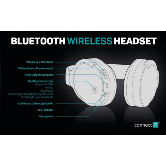 CONNECT IT Bezdrôtové náhlavné slúchadlá, ČIERNA
