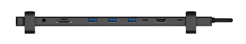 Prakticky tvarovaná USB-C dokovacia stanica "Multi10in1" pre pripojenie až 10 periférií (2x USB-C, 1x HDMI, 3x USB-A, 3.5 mm jack, RJ45 Gigabit Ethernet. SD karta, MicroSD karta).