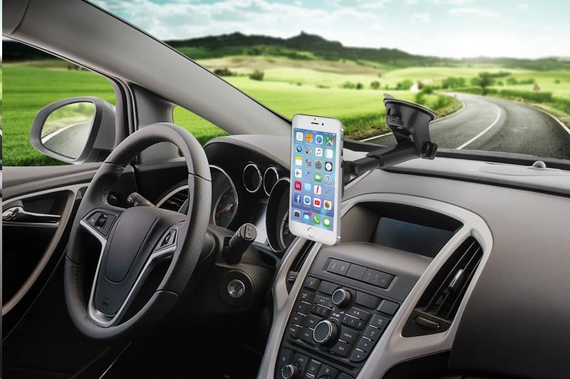 - Pripevňuje sa na palubnú dosku alebo čelné sklo vozidla