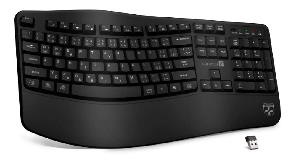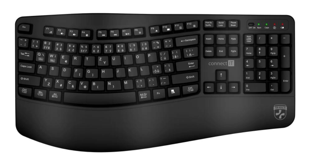CONNECT IT FOR HEALTH Ergonomická klávesnice ErgoOffice, Bezdrátová, CZ+SK, černá