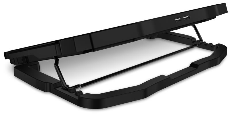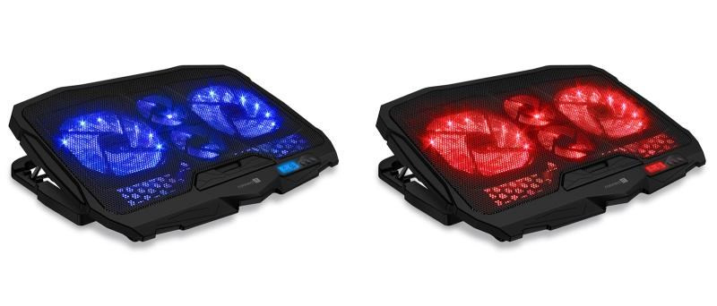 Chladiaca podložka pod notebook so štyrmi šesťrýchlostnými ventilátormi, digitálnym displejom, 4-stupňovým nastavením výšky a dvoma portmi USB. Podložka zabezpečuje odvod tepla z notebooku a jeho vetracích otvorov, ako aj priame chladenie krytu notebooku prostredníctvom cirkulácie chladného vzduchu, čím zlepšuje celkový výkon notebooku. Je plne kompatibilný s notebookmi do veľkosti 15,6" a vďaka kompaktným rozmerom je ideálny na prácu doma a v kancelárii, ako aj na cestovanie a časté prenášanie. Mimoriadne tichá prevádzka 4 ventilátorov vás nebude rušiť ani pri najnáročnejšej práci vyžadujúcej maximálnu koncentráciu. Nastaviteľná výška v 4 rôznych úrovniach zaručuje maximálne pohodlie aj počas dlhšej práce alebo hrania hier.