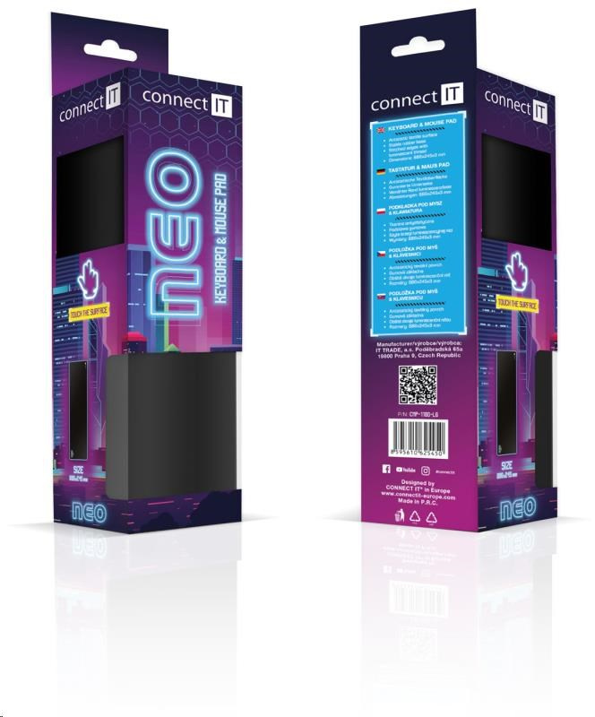 Kvalita a štýl podložky pod myš CONNECT IT NEO budú odrážať pozitívne vlastnosti vašej myši. Moderný materiál podložky poskytuje myši ľahko čitateľný podklad aj pre najjemnejšie laserové snímanie. Dvojvrstvový materiál kombinujúci protišmykové vlastnosti na spodnej strane a ideálne vlastnosti myši na hornej strane výrazne prispieva k ideálnej rovnováhe medzi ovládaním a kĺzaním myši.