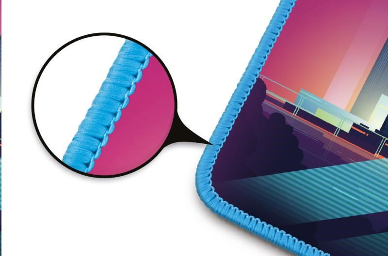 Podložka má mäkký, príjemný povrch s nadčasovou kybernetickou potlačou. Vďaka hracej ploche 320 x 245 mm vám nikdy nebude chýbať priestor na pohyb. Veľkou výhodou je pogumovaná protišmyková spodná strana a antistatický povrch, na ktorom bude bez problémov jazdiť každá myš. Materiál bol navrhnutý tak, aby odpudzoval vodu a nečistoty. Podložka má okraje obšité špeciálnou vysokokvalitnou svietiacou niťou, ktorá v tme jemne svieti.