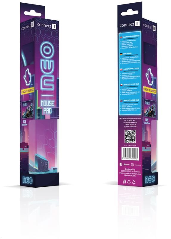 Kvalita a štýl podložky pod myš CONNECT IT NEO budú odrážať pozitívne vlastnosti vašej myši. Moderný materiál podložky poskytuje myši ľahko čitateľný podklad aj pre najjemnejšie laserové snímanie. Dvojvrstvový materiál kombinujúci protišmykové vlastnosti na spodnej strane a ideálne vlastnosti myši na hornej strane výrazne prispieva k ideálnej rovnováhe medzi ovládaním a kĺzaním myši.