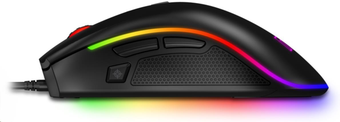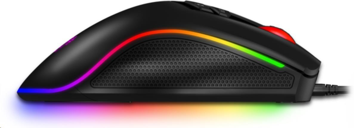 Profesionálna herná myš z edície NEO+ SERIES pre hráčov počítačových hier s ôsmimi nastaviteľnými tlačidlami, presným optickým snímačom a plnou podporou používateľských makier.