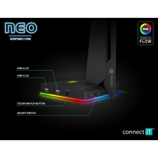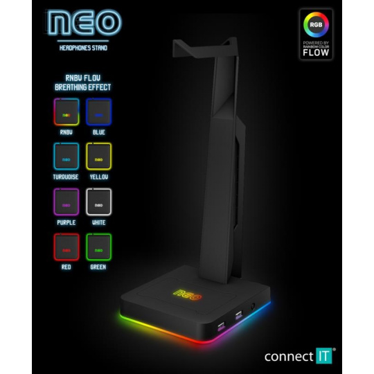 CONNECT IT NEO Stand-It RGB stojan na slúchadlá + rozbočovač USB, čierny