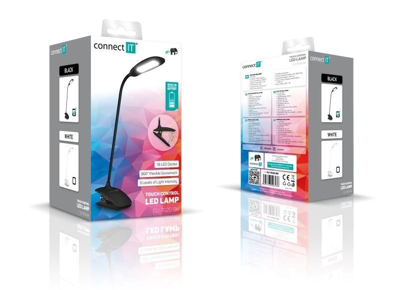 Vďaka flexibilnému ramenu nastavíte dokonalý uhol pre akúkoľvek prácu. Lampička disponuje praktickým dotykovým spínačom, ktorý umožňuje zapnúť/vypnúť lampu a nastaviť 3 úrovne jasu svetla. Pomocou klipu môžete lampičku umiestniť nielen na Váš pracovný stôl, ale napríklad na poličku, nočný stolík či rám postele.