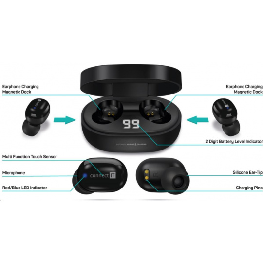 CONNECT IT True Wireless SensorTouch sluchátka do uší s mikrofonem, černá