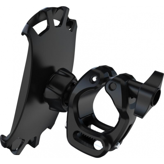 Vďaka umiestneniu na riadidlách môžete pohodlne používať navigáciu GPS, športové aplikácie alebo hudobný prehrávač. Inštalácia je veľmi jednoduchá - stačí nastaviť držiak na priemer riadidiel, utiahnuť a je hotovo. Potom stačí nastaviť sklon držiaka, ktorý upevníte pomocou otočnej poistnej matice, a telefón jednoducho zaistíte silikónovými pútkami. Držiak poskytuje rovnakú stabilitu vo vertikálnej aj horizontálnej polohe.