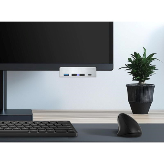 Umožní napájanie a pripojenie ďalších periférií ako sú napr. myš, klávesnica, MP3 prehrávač, digitálny fotoaparát, externý pevný disk, flashdisk atď. Ide o výborný doplnok bežných stolových počítačov aj prenosných notebookov, ktoré nemajú dostatok vlastných portov. Vďaka svojim kompaktným rozmerom ide o ideálne príslušenstvo k notebookom, ktoré upevníte na dosku stola. Na pripojenie k počítaču je určené rozhranie USB-C (Type-C) alebo USB-A 3.2 gen 1. Napájený je z USB portu počítača alebo notebooku, takže nepotrebuje žiadne ďalšie napájanie.