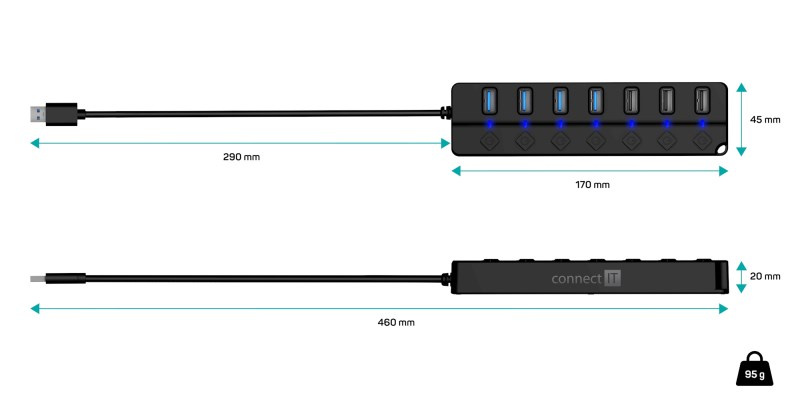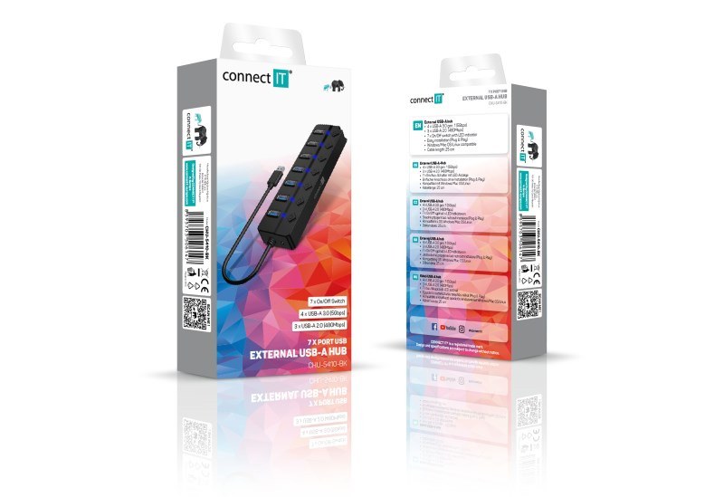 CONNECT IT USB Hub Mighty Switch 2, 4xUSB 3.0, 3xUSB 2.0, externí, černá