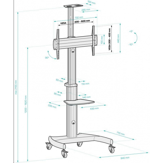 CONNECT IT Wheelie II mobilný stojan a držiak na jednu obrazovku 37" - 70", 30 rokov záruka, STRIEBORNÝ