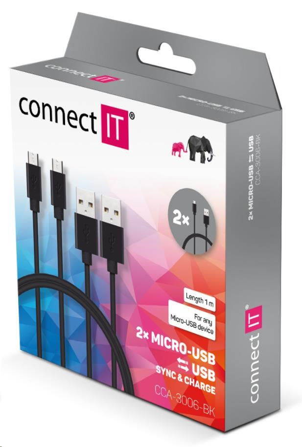 CONNECT IT Wirez Micro USB - USB, čierny, 1 m (2 ks v balení)