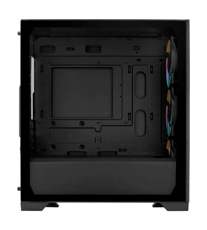 Elite 301 je vybavený veľkou sacou mriežkou a 3x 120mm ventilátormi ARGB, ktoré zabezpečujú plynulý a efektívny chod systému. Plne čierny povlak a priložený kryt PSU umožňujú čistú zostavu, ktorá je vizuálne atraktívna aj funkčná.