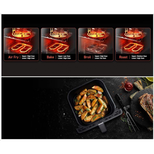 S teplovzdušnou fritézou COSORI CAF-P583S SMART si môžete bez výčitiek vychutnať svoje obľúbené vyprážané jedlá, pretože na rozdiel od bežného vyprážania alebo vyprážania je možné pripraviť jedlo s použitím veľmi malého alebo žiadneho oleja. Patentovaná technológia THERMO IQ 360° HEAT CIRCULATION presne reguluje teplotu pomocou inteligentného teplotného algoritmu, aby sa zabezpečilo rovnomerné uvarenie jedla bez potreby triasania alebo preklápania. Kombinácia cirkulujúceho horúceho vzduchu, perfektnej teploty varenia a inteligentných programov zabezpečí, že hranolky budú vždy krásne chrumkavé a kuracie stehná šťavnaté. Programy môžete rýchlo a pohodlne nastaviť aj prostredníctvom smartfónu alebo Amazon Alexa a Google Assistant. Keď skončíte, upratovanie bude rovnako jednoduché vďaka nepriľnavému košu, ktorý je možné umývať v umývačke riadu. Vďaka veľkej nádobe s objemom 6,4 l môžete rýchlo variť aj pre väčšiu rodinu alebo skupinu hostí.