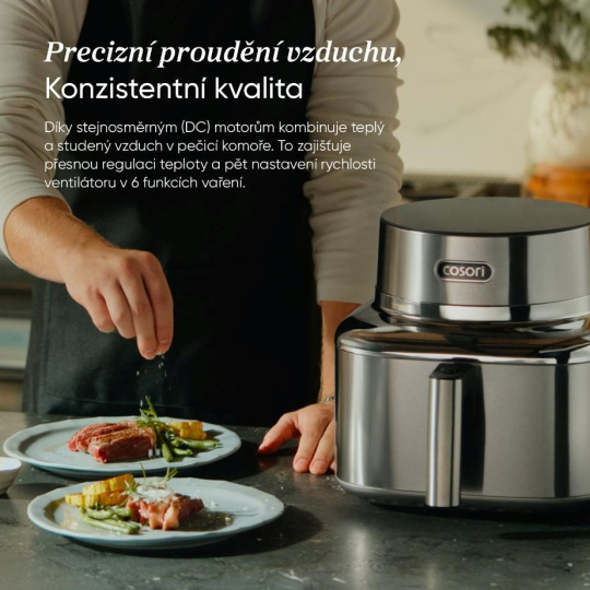 COSORI Iconic bol navrhnutý tak, aby bol prirodzenou súčasťou moderného interiéru, nie len obyčajným spotrebičom. Nerezová oceľ a tvrdené sklo vytvárajú čistý, pokojný vzhľad, ktorý krásne zapadá do minimalistických kuchýň. Je to predmet, ktorý poteší oko zakaždým, keď okolo neho prejdete.