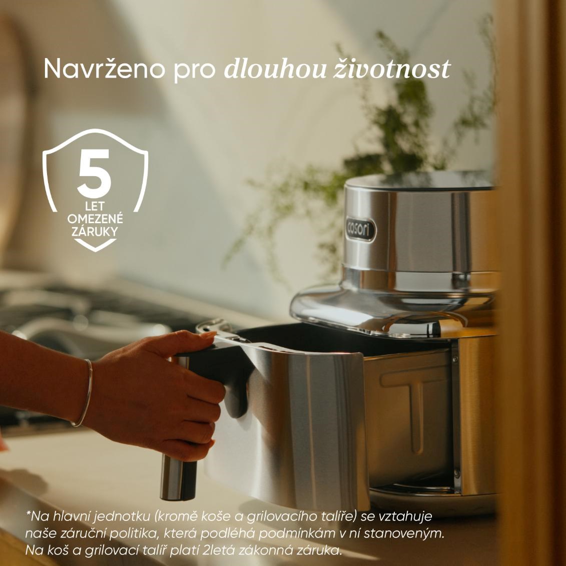 Súčasťou balenia je elegantná kuchárska kniha plná inšpirácie, dostupná aj v online českej verzii, ktorá vás krok za krokom prevedie zdravým varením. Predĺžená 5-ročná záruka, testovaná životnosť 2000 hodín a odolnosť voči 300 cyklom umývania v umývačke riadu dokazujú, že Iconic je stvorený pre roky každodenného potešenia. To všetko v tele, ktoré vyzerá rovnako dobre, ako varí. COSORI Iconic nie je spotrebič – je to životný štýl, v ktorom sa dizajn, zdravie a výkon spájajú v dokonalej harmónii.