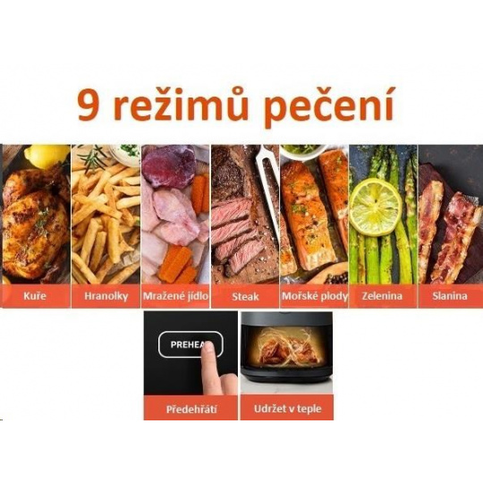 Horúci vzduch rotuje okolo jedla zo všetkých strán a tým dosahuje kvalitné a rovnomerné prepečenie a uvarenie pokrmov. Vďaka tejto technológii sa fritéza predohreje behom 5 minút.
