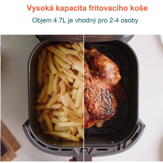 • Objem fritovacieho koša 4,7l pri zachovaní kompaktných rozmerov