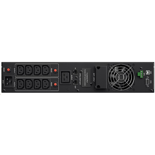 | Dodávka zahŕňa | UPS, Používateľská príručka, Rackmount koľajnice, Úchyty na montáž do stojana, Pripojovací kábel (2), Telefónny kábel, Kábel USB, Sériový kábel (RS232), M5X8L (8), M5X12L (12), Plastové podložky (8) Zaslepovacia doska (12), CD so softvérom PowerPanel® Business Edition. Gumové podložky pre UPS(12) |