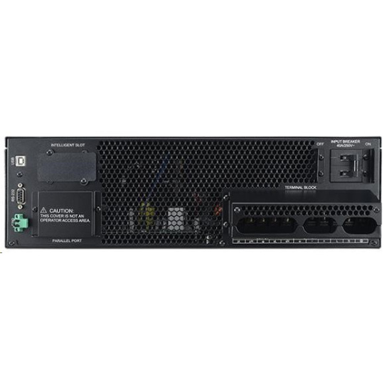 | Obsah dodávky | UPS; kryt Vstup/Výstup Terminal bloku; používateľská príručka; telefónny kábel; PowerPanel®Business Edition softvérové CD; USB kábel typ A+B; lišty na uchytenie do racku; konzola na montáž do racku (2+2); spojovací plech (2); lišty (2+2); sériový kábel; napájací kábel; montážna sada |