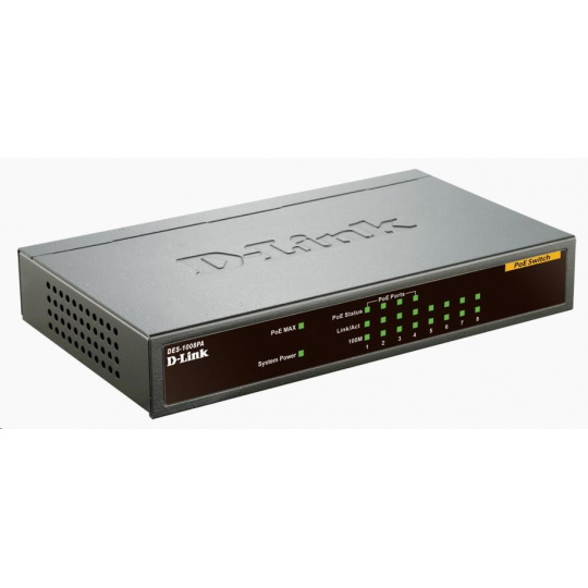 D-Link DES-1008PA 8-portový 10/100 stolový prepínač so 4 portami PoE