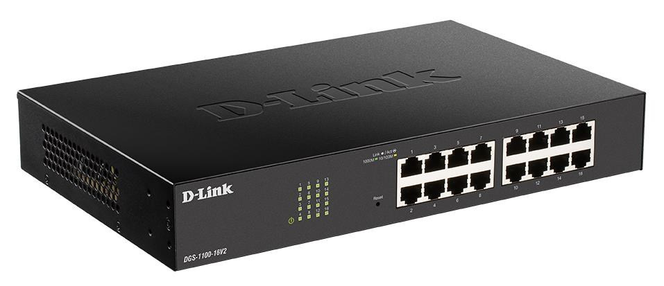 D-Link DGS-1100-16V2 16-portový gigabitový inteligentný riadený prepínač, bez ventilátora