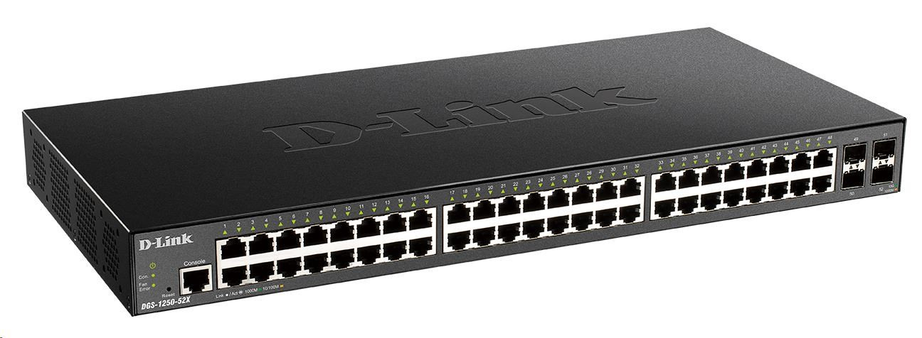 D-Link DGS-1250-52X 52-portový gigabitový inteligentný prepínač, 48x GbE, 4x SFP+