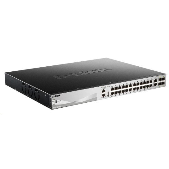 D-Link DGS-3130-30PS/SI L3 stohovateľný gigabitový riadený PoE switch, 24x PoE gigabit, 2x 10GBASE-T, 4x SFP+, 370W PoE