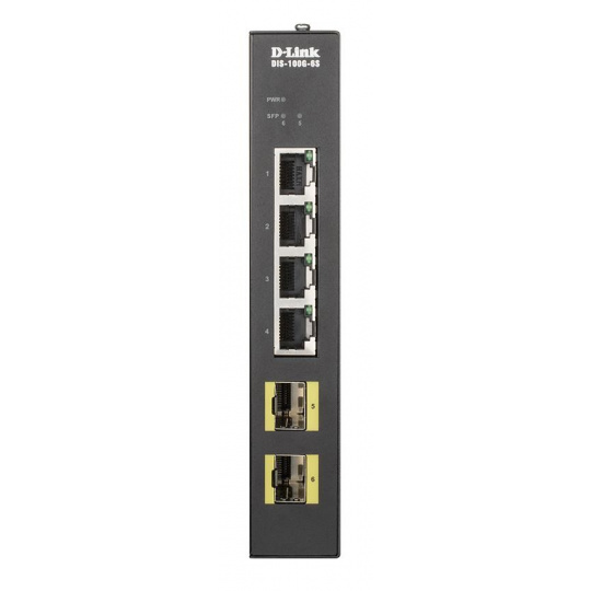 D-Link DIS-100G-6S Priemyselný gigabitový switch bez správy, 4x GbE, 2x SFP, DIN