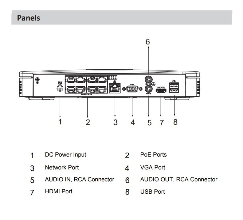 - PoE napájanie kamier: 8 x PoE (802.3af - max.72 W celkom) s technológiou Plug & Play, max. spotreba z jedného portu je 25.5 W