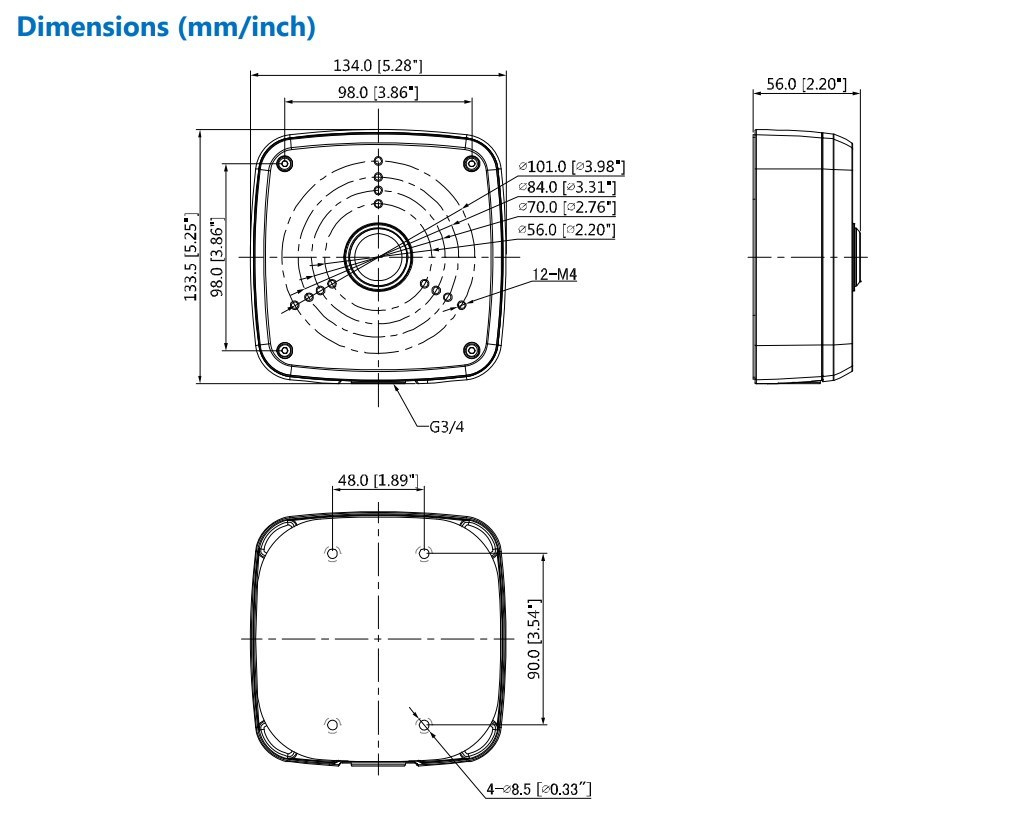 - Rozmery (Š x V x H): 134,0 mm x 133,5 mm x 56,0 mm