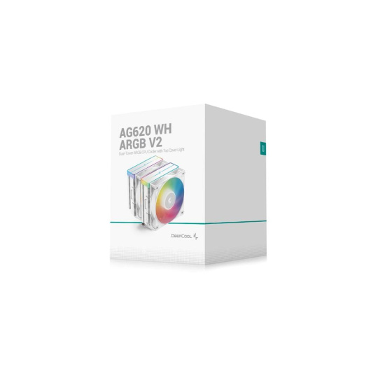 DeepCool AG620 WH ARGB V2 je úplne biely dvojvežový chladič procesora zameraný na vysokú výkonnostnú účinnosť, ktorý sa pýši šiestimi tepelnými trubicami zabudovanými v hustej veži chladiča pre optimálny odvod tepla a je vybavený dvomi ladenými 120mm ventilátormi ARGB PWM pre účinné chladenie.