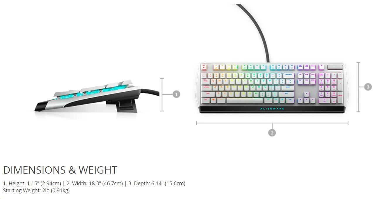 DELL Alienware 510K Low-profile RGB Mechanical Gaming Keyboard - AW510K (Lunar Light)