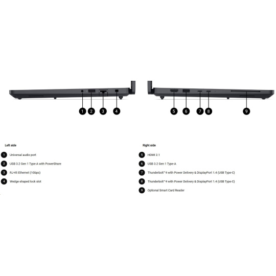 | 4 cell, 72 Whr, 100W AC adapter, USB Type C |