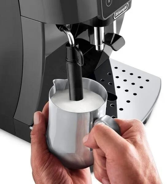Automatický kávovar Magnifica Start vám v průběhu celého dne připraví vaši oblíbenou kávu. Stačí stisknout jediné tlačítko a už se vám bude chystat aromatické espresso nebo Americano. Do paměti kávovaru De'Longhi Magnifica Start ECAM220.22.GB lze uložit i vaše preference pro aroma, velikost i teplotu kávy. Milovníci mléčných nápojů mohou s pomocí Cappuccino systému připravit perfektně napěněné mléko.