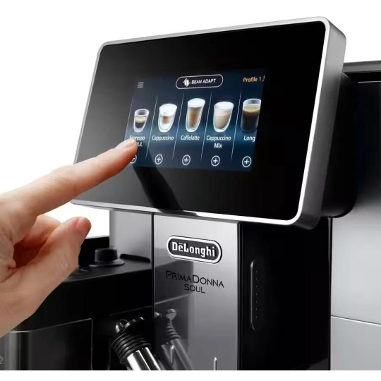 Pro labužníky kávy představujeme revoluci v kávovarech prostřednictvím automatického kávovaru De'Longhi PrimaDonna Soul ECAM 610.55.SB. Jeho exkluzivní technologie Bean Adapt přizpůsobí mletí kávy podle druhu kávových zrn a připraví vám dokonalé espresso. Potěší vás také jedinečný systém pěnění mléka „LatteCrema“, díky kterému bude vaše mléčná káva chutnat dokonale, ať už si připravíte nadýchané cappuccino či energií nabité cortado.