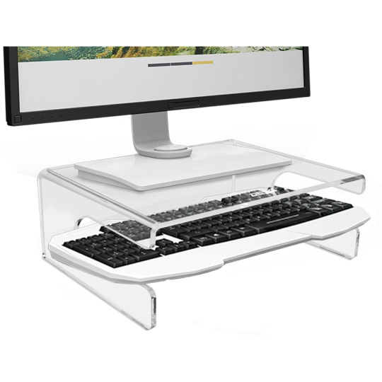 Monitorový stojan vyrobený z vysoko kvalitného priehľadného akrylu v modernom minimalistickom dizajne. Jednoduchý, ale pevný a stabilný dizajn neruší a zároveň poskytuje maximálnu praktickosť. ? Vysoko kvalitný 6 mm priehľadný akryl ? Možnosť uloženia klávesnice pod stojan ? Mini počítače je možné umiestniť pod stojan (napríklad Mac Mini) ? Gumené nohy pre stabilitu a ochranu pracovnej plochy ? Nosnosť až 15 kg – robustná a odolná konštrukcia S DESQ stojanom na monitor zvýšite obrazovku do ideálnej výšky, čo podporuje zdravé a ergonomické držanie tela a pomáha predchádzať bolesti chrbta, krku a očí.