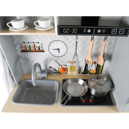 Dětská dřevěná kuchyňka s rozšířeným příslušenstvím + textilní set ZDARMA - moderní design