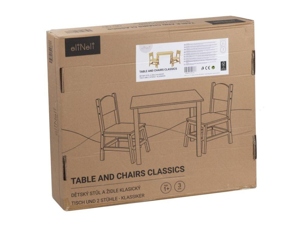 Detský stolík a 2 stoličky, v klasickom dizajne, je krásnym a praktickým setom detského nábytku do detskej izby, kuchyne, jedálne aj herného kútika. U stolíka si môžu deti maľovať a kresliť, tvoriť, prehliadať obľúbené knihy, hrať si alebo si dať olovrant. Detský stôl a stoličky v prírodnom (natur) prevedení je vhodný pre dievčatká aj chlapcov, do každého interiéru.